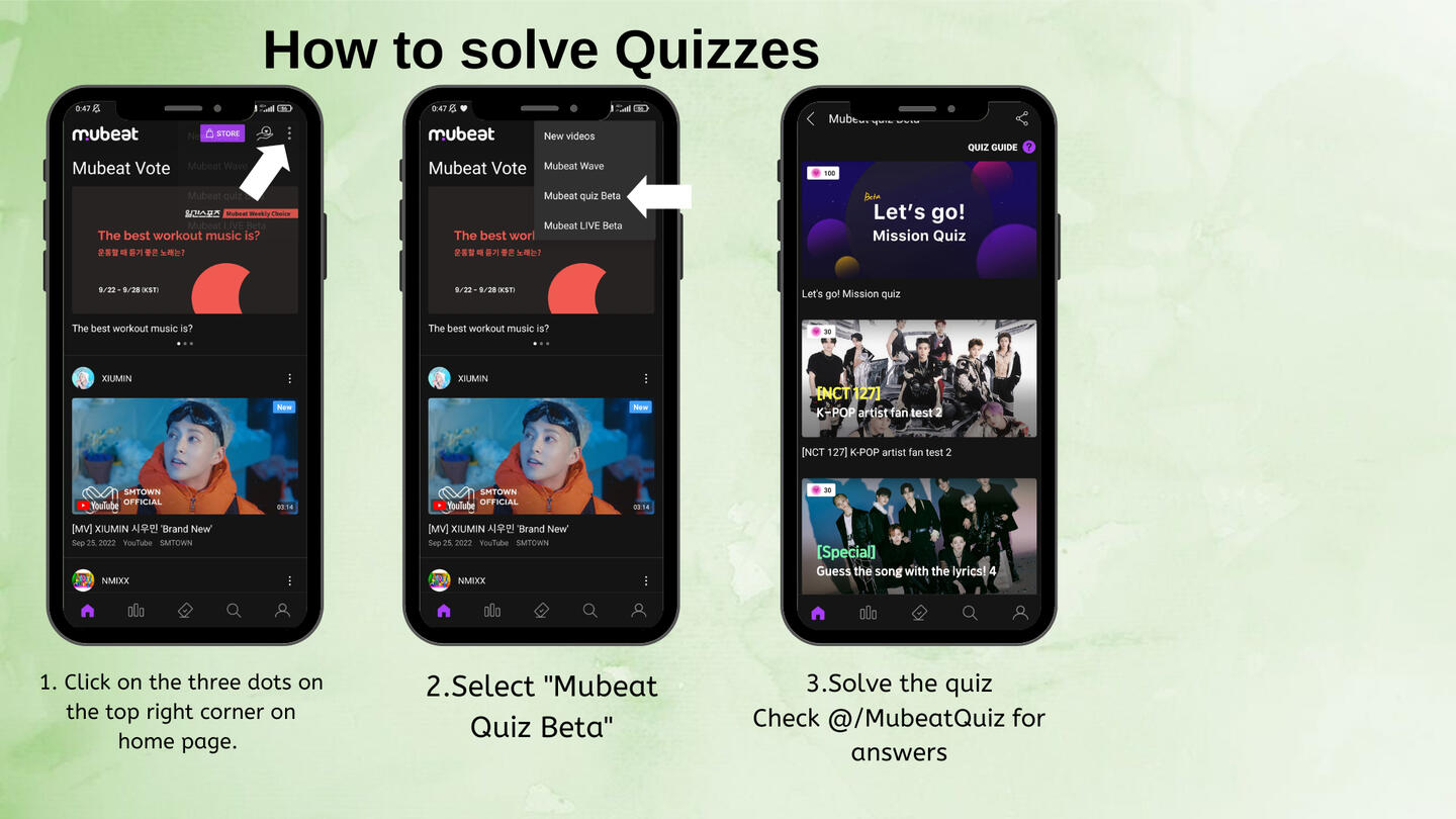 📍Check the answers carefully because the quizzes have time limit and if you get any question wrong, you will not be able to receive beats.